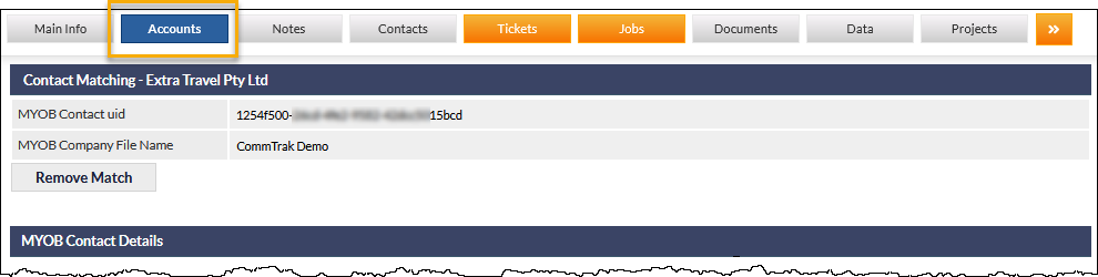 Please refer to Support Centre category Accounting Settings for further information relating to the matching of CommTrak Customers to an accounts service.