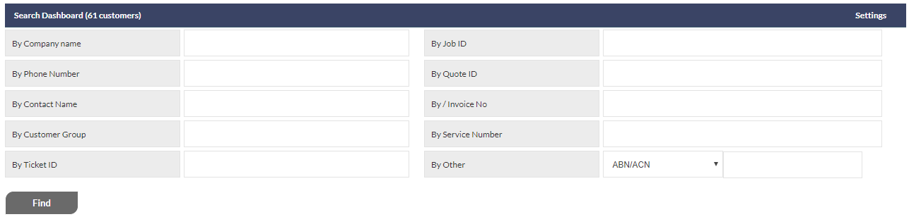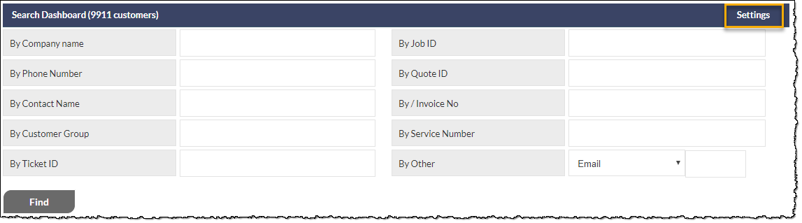 The available searchable fields, and the order in which they appear, can be customised by the end-user by clicking the Settings link displayed right-most on the Search Dashboard section header.