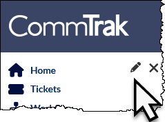To customise the CommTrak Main Menu, press the edit (pencil) button adjacent to the Home option (which is always displayed at the top of the menu).