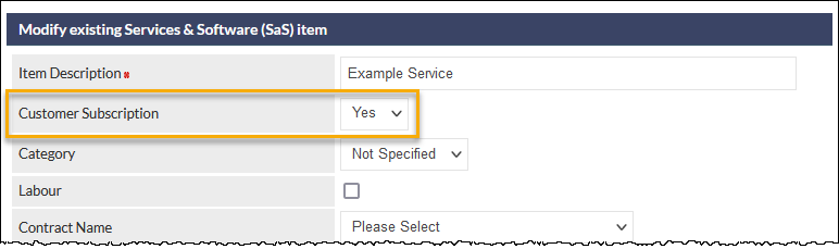 Updates have been made to the terminology of some elements within the SaS (Services & Software) features in the Leads/Quotes module, and some enhancements have been made to simplify and aid in the configuration of SaS items.