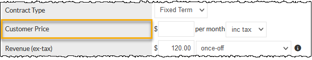 It is important to note that, regardless of the tax selection for Customer Price, the Revenue is always entered as ex-tax, as indicated in the Revenue field label (visible in the previous image).