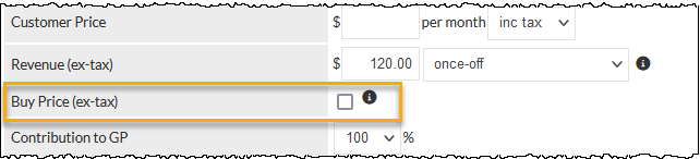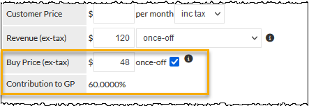 If ticked, a Buy Price must be entered and Contribution to GP is updated automatically: