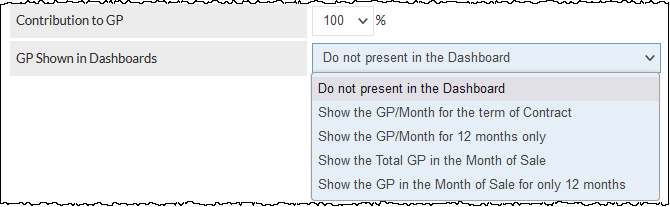 If Buy Price is unticked (default), the Contribution to GP (visible in previous image) must be specified by selecting a percentage from the dropdown list (default 100%).