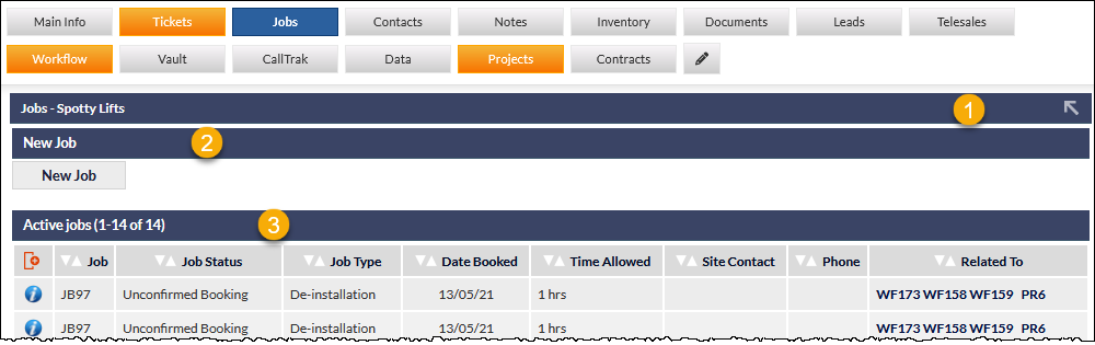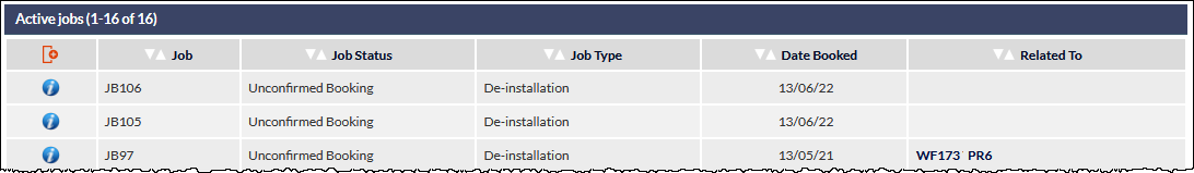 This section lists all Active Jobs. An active Job is any Job that does not have a status of Closed or Cancelled.