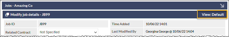 Unless otherwise configured by a CommTrak administrator, all users will see the Default view when they view a Job screen.