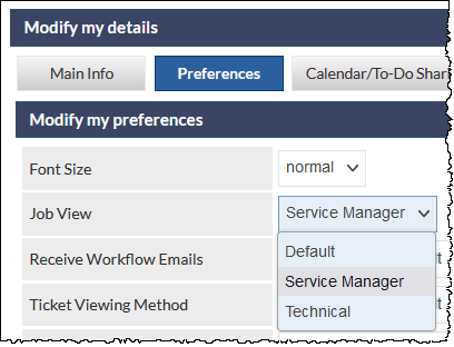 For example, the person responsible for scheduling, the service manager and a contractor most likely need to see different information on a Job screen.