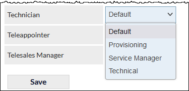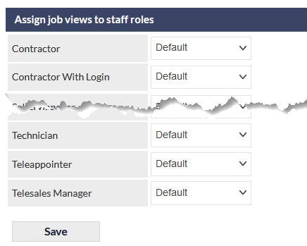 Select the dropdown list adjacent to the role for which you wish to modify the default view: