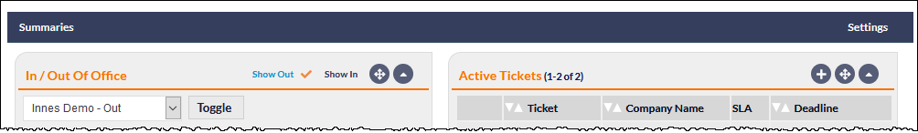 The above image shows an example of some of the Summary Panels; the layout can be customised as detailed in the Summary Panel Features and Summary Panel Settings sections.