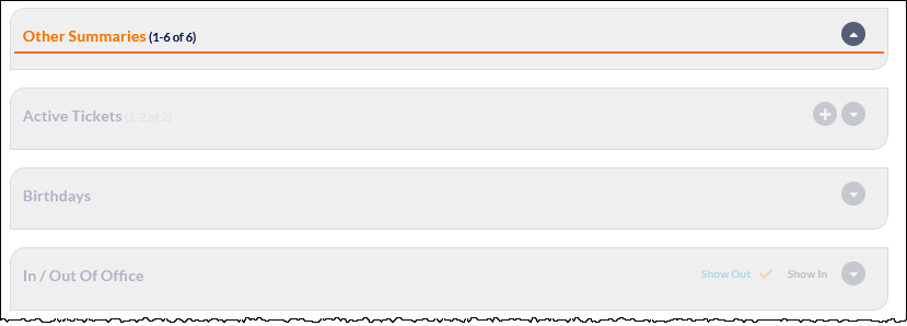Click the Show / Hide icon in the Other Summaries panel-heading to hide the panels again. Refreshing the home screen also hides the panels in the Other Summaries area.