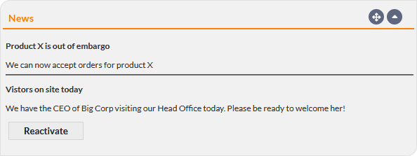If the news banner has previously been dismissed, it can be reactivated by pressing the Reactivate button (visible in the previous image).