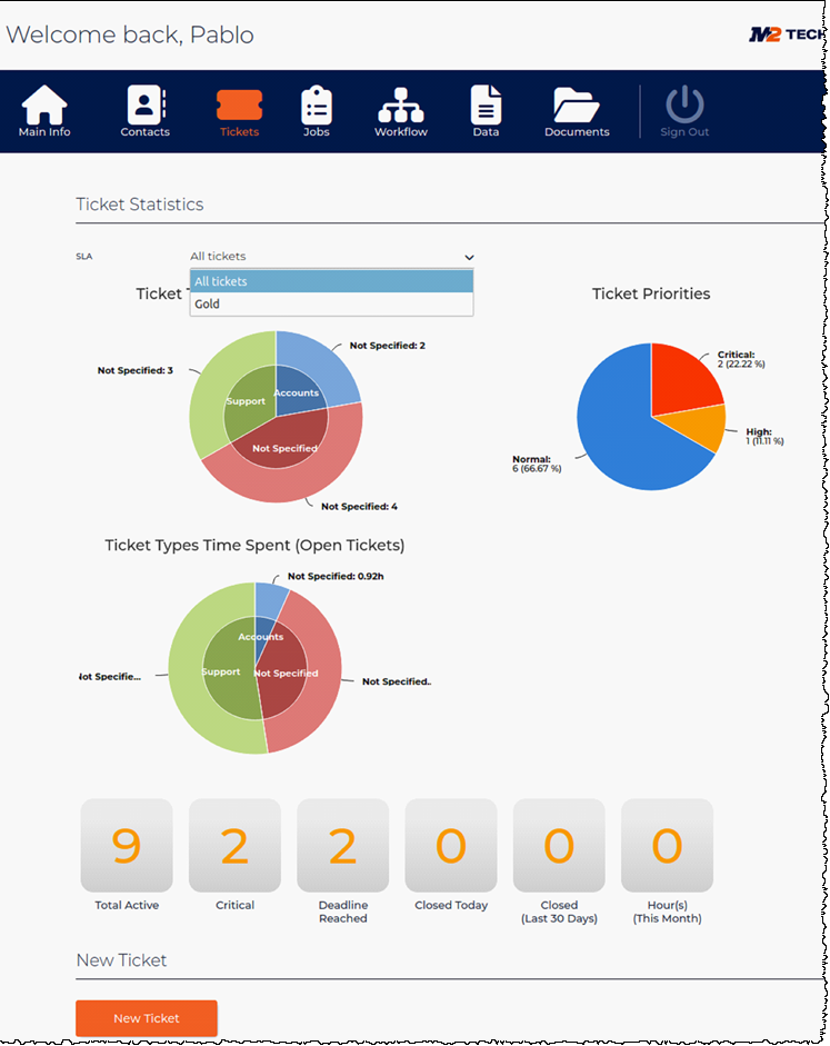 Contacts can filter the data shown in the Ticket Dashboard by selecting an SLA type from the dropdown list (visible in the previous image).