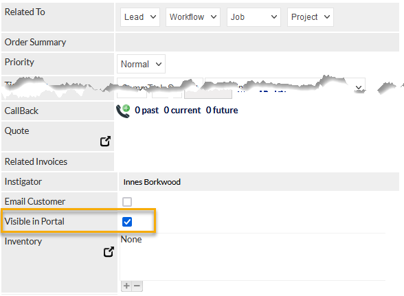 The Visible in Portal option can be ticked or unticked at any time, and when the Ticket is subsequently saved, the Ticket will become visible or hidden in the portal accordingly.