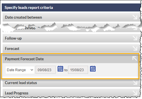 A Forecast Payment Date criterion has been added to the Leads Report: