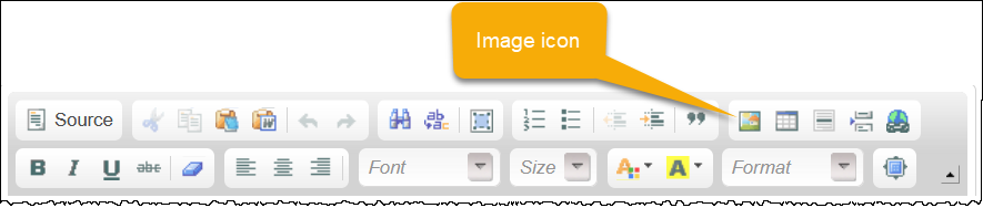 The CommTrak image library is available in the toolbar of any CommTrak HTML editor into which images can be inserted.