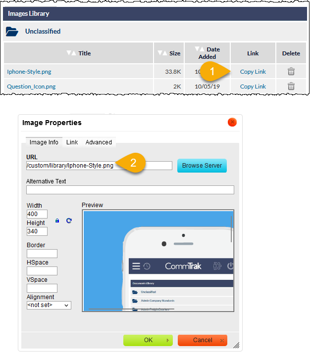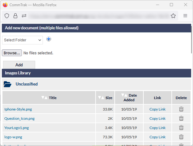 This article is an introduction to managing the CommTrak Image Library, which can be used as a source for images (e.g. a logo or product photograph) in the CommTrak HTML editor.