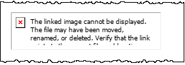 - An image referenced in an HTML template has been deleted from its original storage location (such as the image library or other file server).