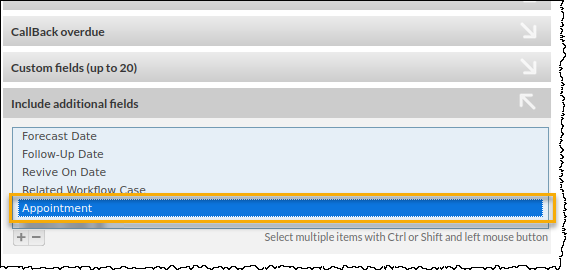 When the Appointment field is selected, as shown in the previous image, an Appointment column will be added to the report results: