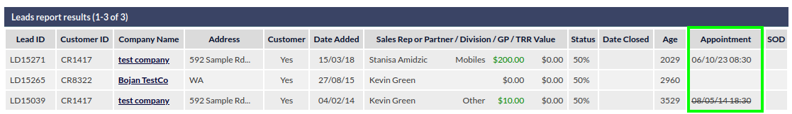 Note that when exporting the Leads report to a CSV the historical appointments are not formatted, as CSV files contain only non-formatted text. You may wish to sort / filter the resulting CSV as required for your needs.