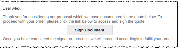 Quote links are typically sent directly from CommTrak, and we have provided a standard email template containing a button that will take your contact to a web page with a signable quote: