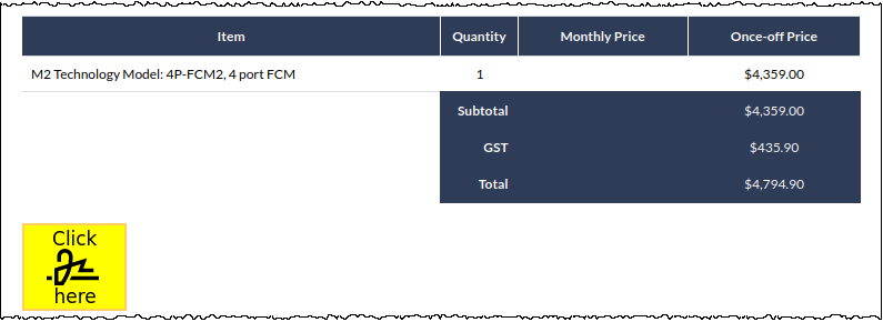 When the link is clicked by a contact, a signable quote will be presented to them in a web browser, as shown in the following image: