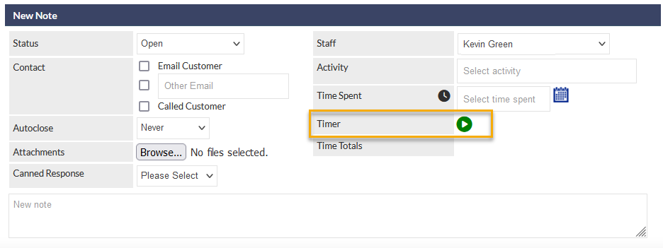 Timers can be used for tracking the duration of activities in any Ticket or Job, and have been designed to aid staff in recording the duration of their daily activities.