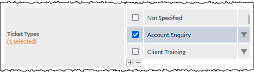 To filter the Active Tickets list by Ticket SubType, tick the box adjacent to the Ticket Type and press the filter icon (visible in the rightmost column in the previous image).