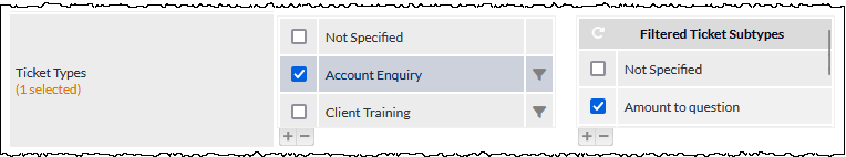 - Clear all subtypes for the current Ticket Type by pressing the white reset icon (visible in the previous image) at the top of the Filtered Ticket Subtypes filter.