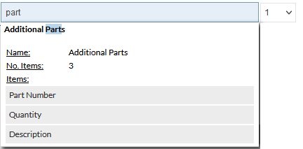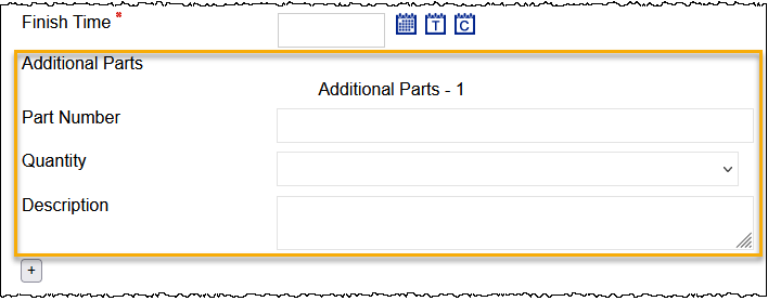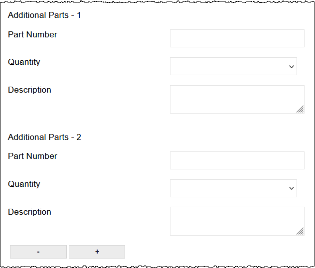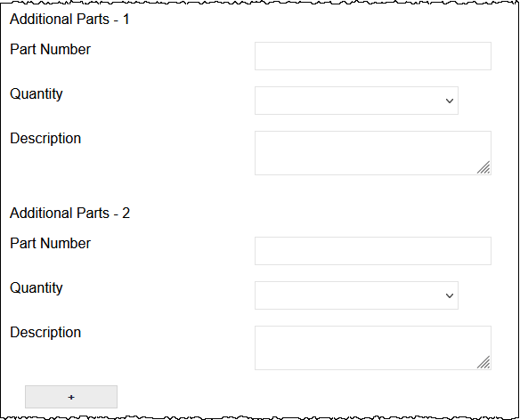 The Additional Parts field group in the previous image consists of three fields (Part Number, Quantity and Description).