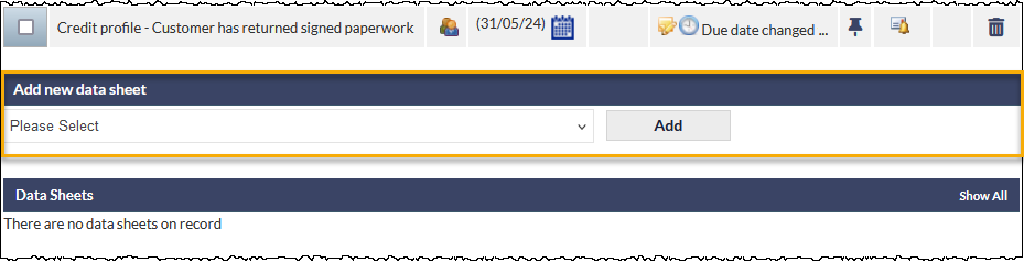 Data Sheets can now be directly added to a Workflow Case. The Data Sheets section is located immediately below the Case Tasks within a Workflow: