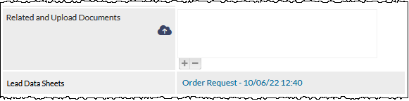 Data Sheets that have been created within a Lead to which the Workflow Case is related, are still displayed in the Lead Data Sheets field (formerly named Data Sheets, but renamed in this release, for clarity). For example, the Order Request data sheet visible in the following image was created in the related Lead: