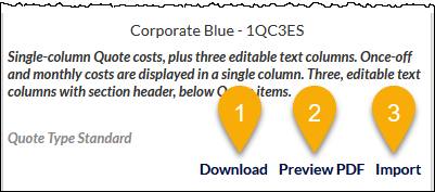 The Template Library templates can be used as-is (using the Import option described previously), but they can also be downloaded, edited externally to CommTrak, and then uploaded as a new Template Toolkit Quote.