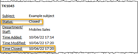 For such records, the status and the date / time closed are displayed as highlighted in the following image: