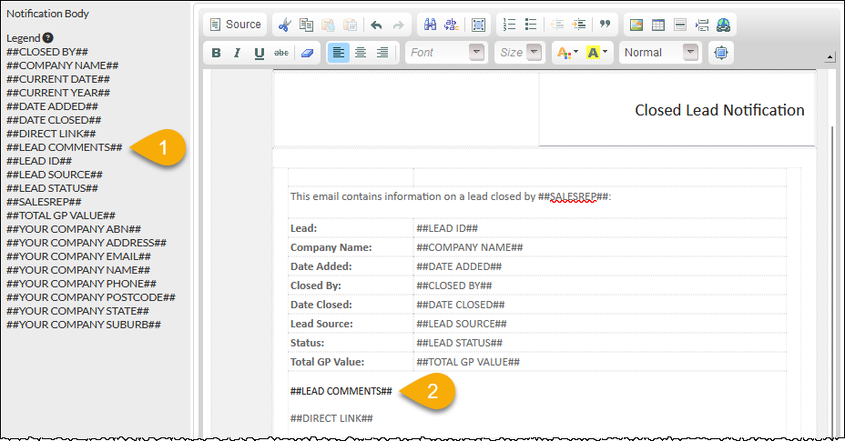Lead Comments Placeholder in Lead Closed Email Notifications