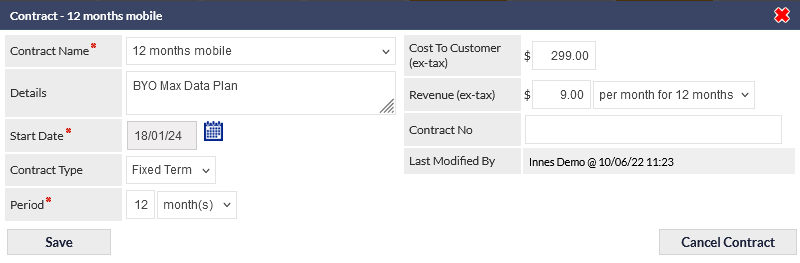 - Click the Cancel Contract button (visible bottom-right in the following image)