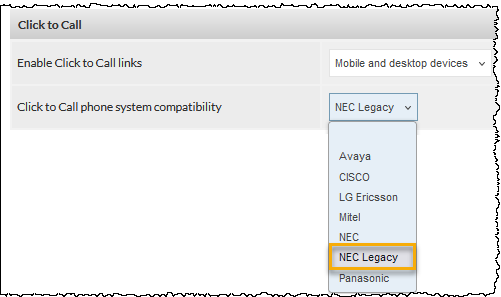 To provide for legacy NEC software, the callto protocol has been added as an option to the Click To Call settings.