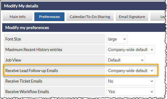 If a user does not change their preference for receiving Lead follow-up emails, they will receive them (or not) according to the Company-wide default.