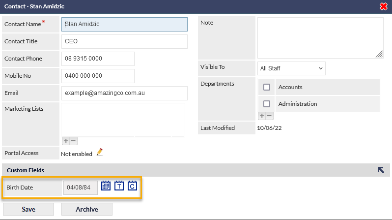 The Sales Rep label may be different in your CommTrak - for example, some organisations use Account Manager or Business Development Manager.