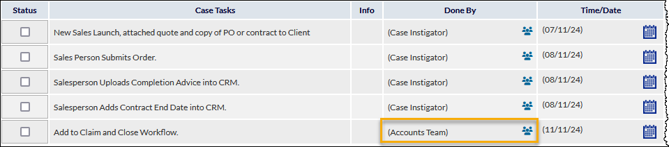 Continuing with this example, we have a Workflow Case that uses the Add to Claim and Close Workflow task which is assigned to the department that we specified in the task settings in the previous image.