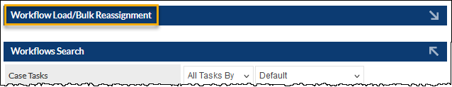Press anywhere on the Workflow Load/Bulk Reassignment bar to expand the section and gain access to the features. For more information, please refer to the Workflow Load Management & Bulk Reassigning Due Workflow Tasks article.