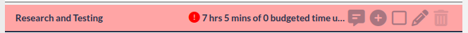 A minor visual change, but one which maintains consistency with other elements in the Projects module, the Project Task overdue alert icon (visible in the following image) has been moved to the left of the 'budget time' information: