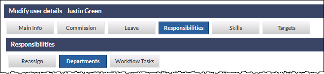 Where a task is assigned to a department of which the currently assigned user is a member, the Reassign Responsibilities column specifies Task assigned to department. This aids in identifying that the Workflow Department may need updating.