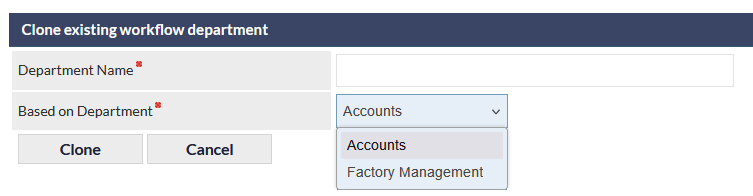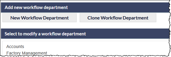 If a new workflow department is being created, and it is identical or similar to an existing workflow department, the existing department can be cloned: