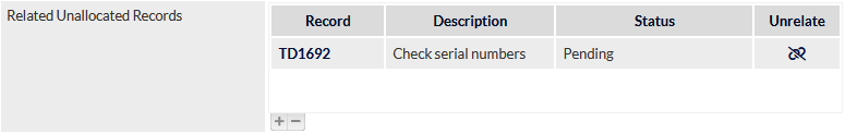 The relationship between an unassigned To-Do and a Project can be removed by pressing the Unrelate (broken link) icon in the Project's Related Unallocated Records field: