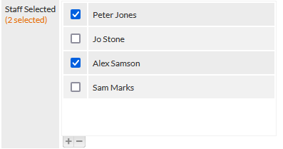 The number of selected staff is shown in orange text in the field label (visible in the previous image).