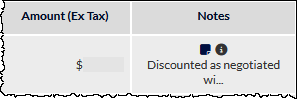 - Information icon - hover to display a pop-up showing the complete text of the note
