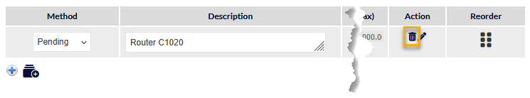 To delete an invoice line item, press the trashcan icon, located in the Action column: