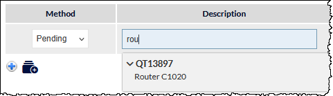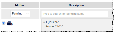 When the Pending method is selected, the Description field of the line item displays, "Type to search for pending items".
