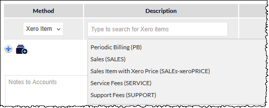 Select this option to select an item available in your accounts software. A list of items synchronised from Xero will be displayed: