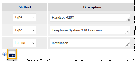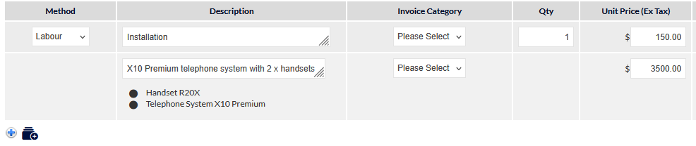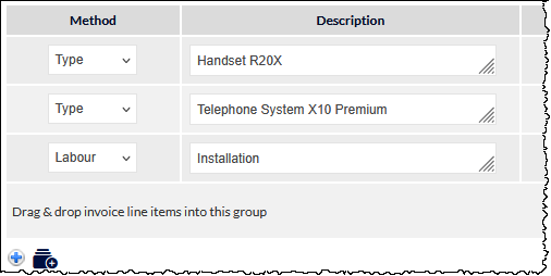 We can group the handset and the telephone system into a single line item on the invoice. Click the Group icon (folders with a plus symbol) below the last line item (highlighted in the following image):