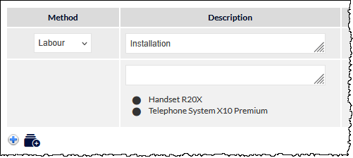 Selecting this method changes the line item Description field into a text area field into which arbitrary text can be typed: